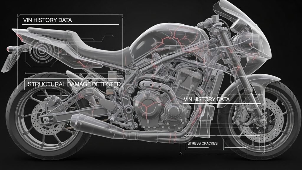 Data Point: NHTSA reports 40% of fatal motorcycle crashes involve poor handling from prior damage. Decode VIN position 6-8 for engine/frame codes.